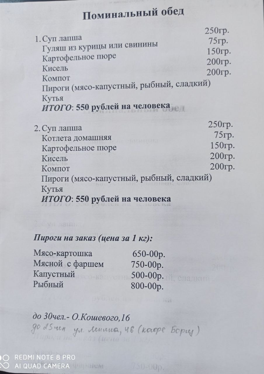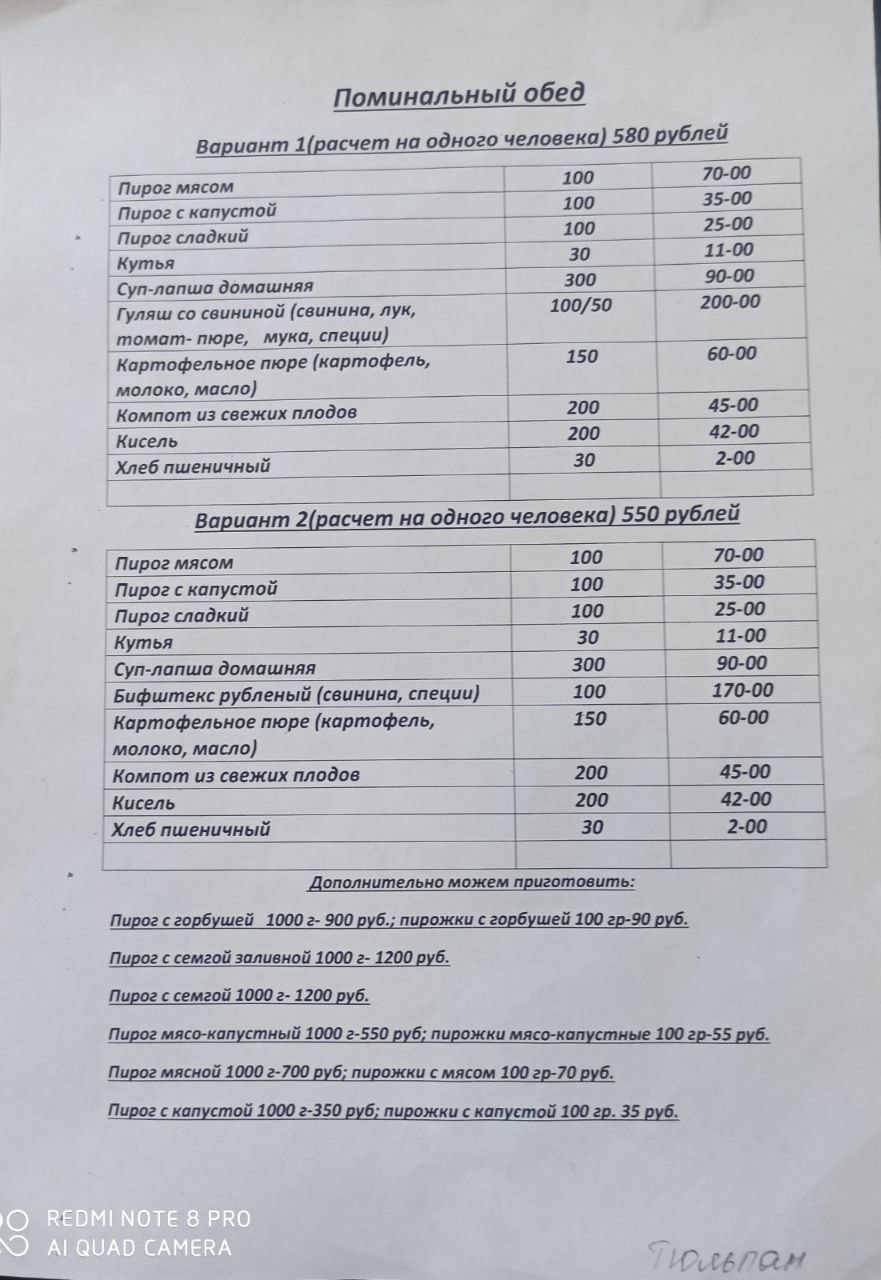 Обговорить меню, время поминального обеда.